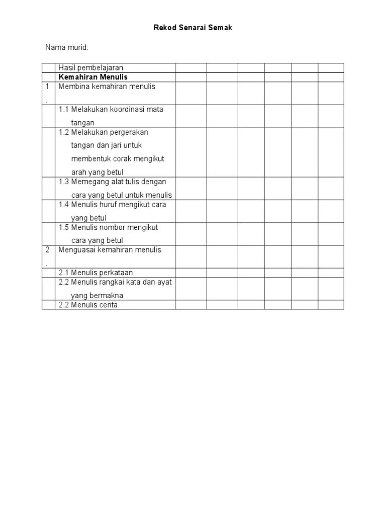 Senarai semak ialah senarai item yang disediakan untuk mengenal pasti perkembangan. Kelas nama murid umur fokus : Share to twitter share to .